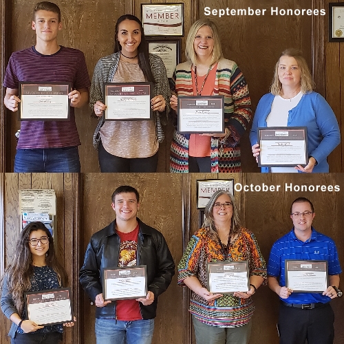 Those honored for the month of September were: Braelyn Berlowitz, CHS senior; Jake Ahrberg, CHS senior; Becky Burt, support staff; and Denice Kennedy, teacher