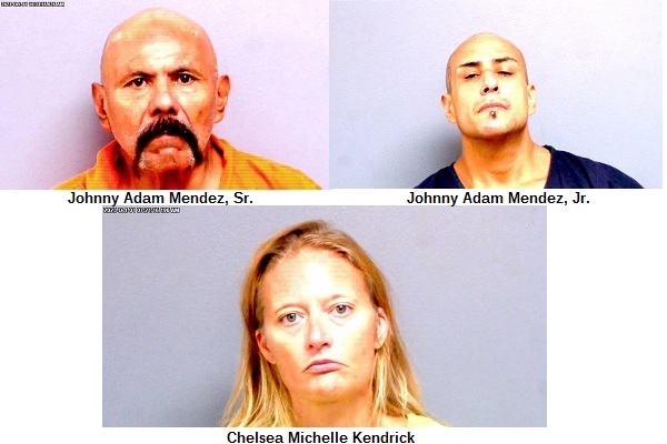 Johnny Adam Mendez Sr., Johnny Adam Mendez Jr., and Chelsea Michelle Kendrick, all of whom are reportedly convicted felons, were jailed on methamphetamine charges on Sept. 30 pending their arraignments in Payne County District Court on Tuesday.
