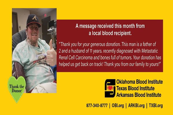 An emergency blood drive has been set up by OBI to help offset the deficit from earlier this week. If you are healthy and willing to donate blood on Saturday, October 31st from 9 am – 1pm, please stop in and see OBI at the Cushing Public Safety Center, 211 West Main, Cushing, OK.