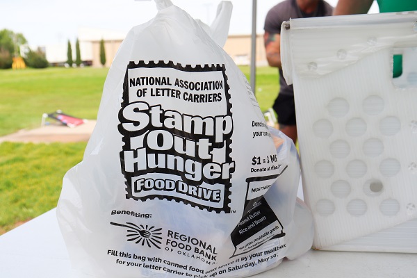 Oklahoma residents will receive a plastic bag in their mailbox the week prior to the event. Residents are encouraged to fill the donation bag, or any plastic bag, with nonperishable food and leave the bag by their mailbox before their letter carrier arrives on Saturday, May 9.